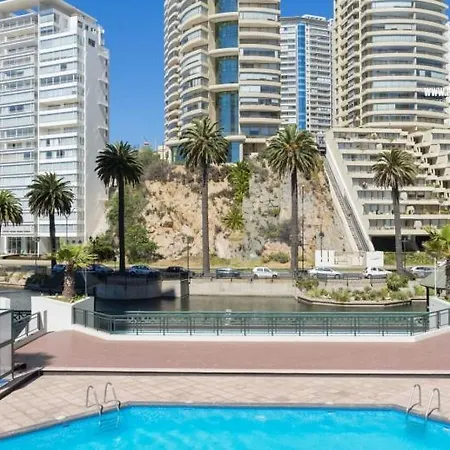 Το διαμέρισμα Hermoso Y Amplio Depto Para 6 Personas Con Piscina Y Wifi 21 Βίνα Ντελ Μαρ 105 τ.μ. Βρίσκεται σε ιδιωτική τοποθεσία, μόνο 7 λεπτά με τα πόδια από την Παραλία El Sol.
